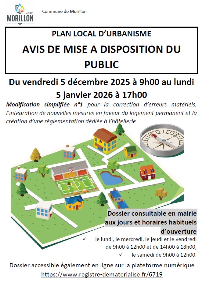 Avis de mise à disposition du public – projet de modification simplifiée n°1 du PLU 27 novembre 2025 dans Actualité, Vivre à Morillon, Information municipale Mise-a-dispo-du-public-MS1-PLUTélécharger